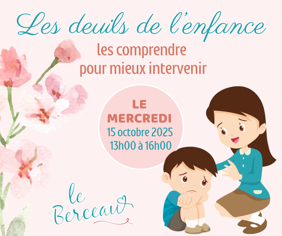 Les enfants vivent aussi des deuils : un déménagement, une séparation, la perte d’un proche ou même d’une doudou…Comment les aider à traverser ces moments avec douceur. Quelques sujets abordés: Comment parler de la mort et des changements à ton enfant Comment l’accompagner avec des mots simples et bienveillants Des outils concrets et activités pour […]