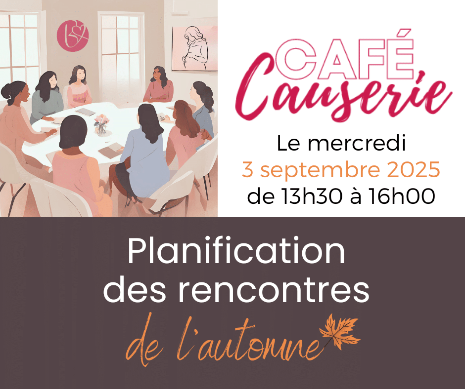 Parce que nos émotions sont normales… mais parfois intenses! Le 1er octobre 2025 de 13h00 à 16h00 la rencontre de groupe aura pour thème : « Nos réactions trop vives ». Au programme : discussions, petites activités et outils concrets pour mieux comprendre et apprivoiser ces « volcans » intérieurs. Un temps pour soi, dans […]